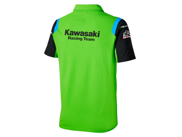 Kawasaki MXGP team-coloured short sleeved polo-shirt with 3-button neck opening in self-fabric collar