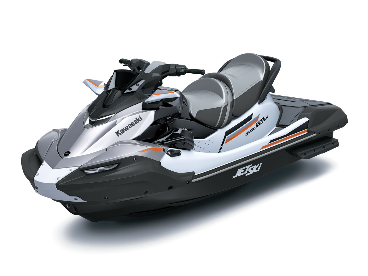 The STX 160X in many ways represents an entry to the world of Kawasaki two-seat personal watercraft. Appealing to those perhaps just starting their ownership journey, the STX 160 active sport model is built up to a spec and not down to a price. It offers all the key features riders need for enjoyment on the water as well as numerous flagship-inspired features like an easy-to-read 7” TFT display, KSRD smart reverse, adjustable Electronic Cruise Control, and even Electric Trim Control.