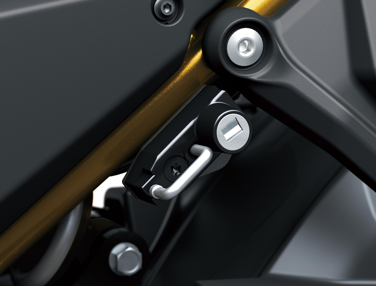 Chassis mounted lock utilizes the Kawasaki One Key System, allowing you to use your ignition key for unlocking
